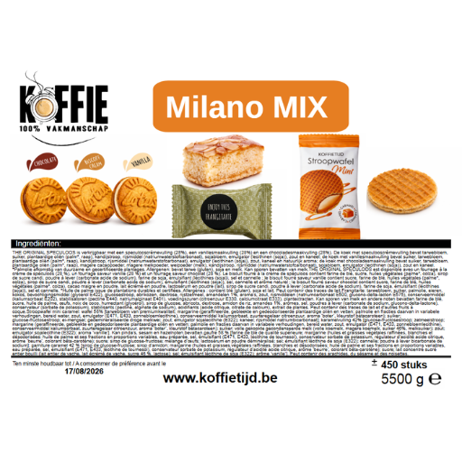 De KoffieTijd Milano MIX bestaat uit een zorgvuldig geselecteerd assortiment van individueel verpakte koffiekoekjes: